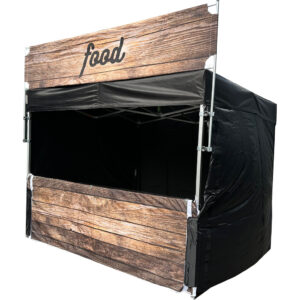 Foodtrucks zijn hartstikke leuk, maar vaak ook flink aan de prijs. Daarom bieden wij een superpraktisch én betaalbaar alternatief: de “Drinks Tent” (3×3 m). Deze partytent is speciaal uitgerust met een stoere custom banner en zwarte zijwanden – perfect om drankjes te serveren op elk feest of event!