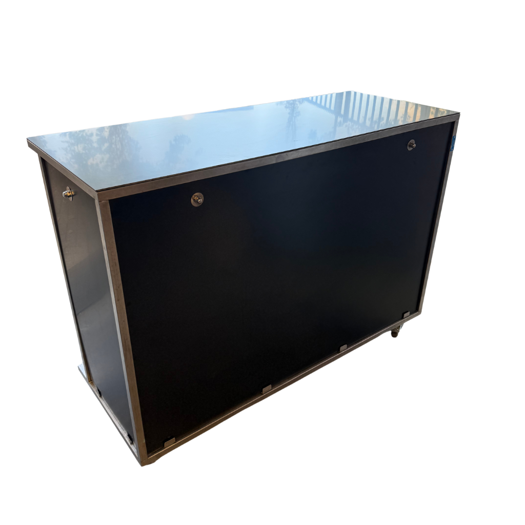 De koeling is volledig geïntegreerd in een stevig frame met barblad en wielen, waardoor hij direct inzetbaar is als bar of uitgiftebuffet. Geen losse onderdelen of montagegedoe – gewoon neerzetten, stekker erin en je bent klaar om te serveren.