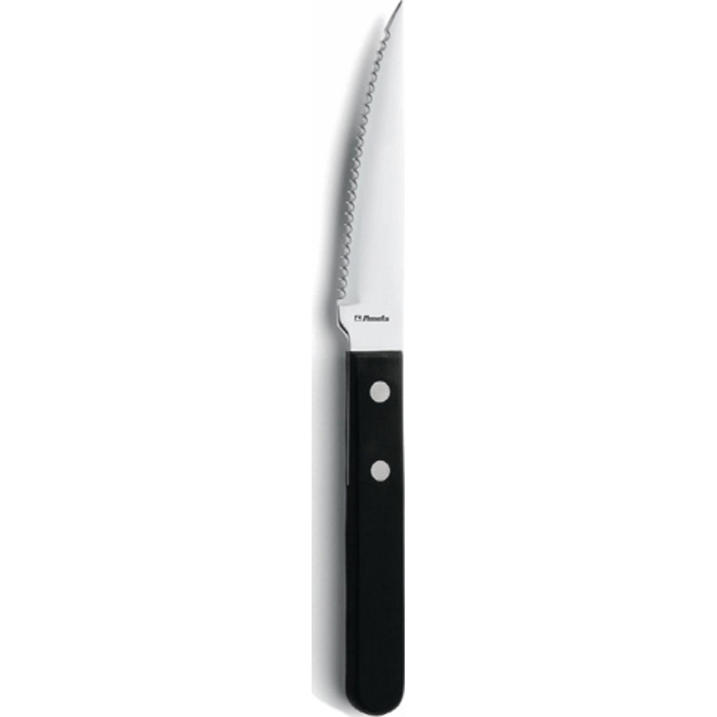 Onze steakmessen zijn de perfecte keuze voor het serveren van steaks, biefstuk of andere vleesgerechten. Met een scherp lemmet en comfortabele grip snijdt dit mes moeiteloos door het vlees, terwijl het een luxe uitstraling geeft aan je tafel.